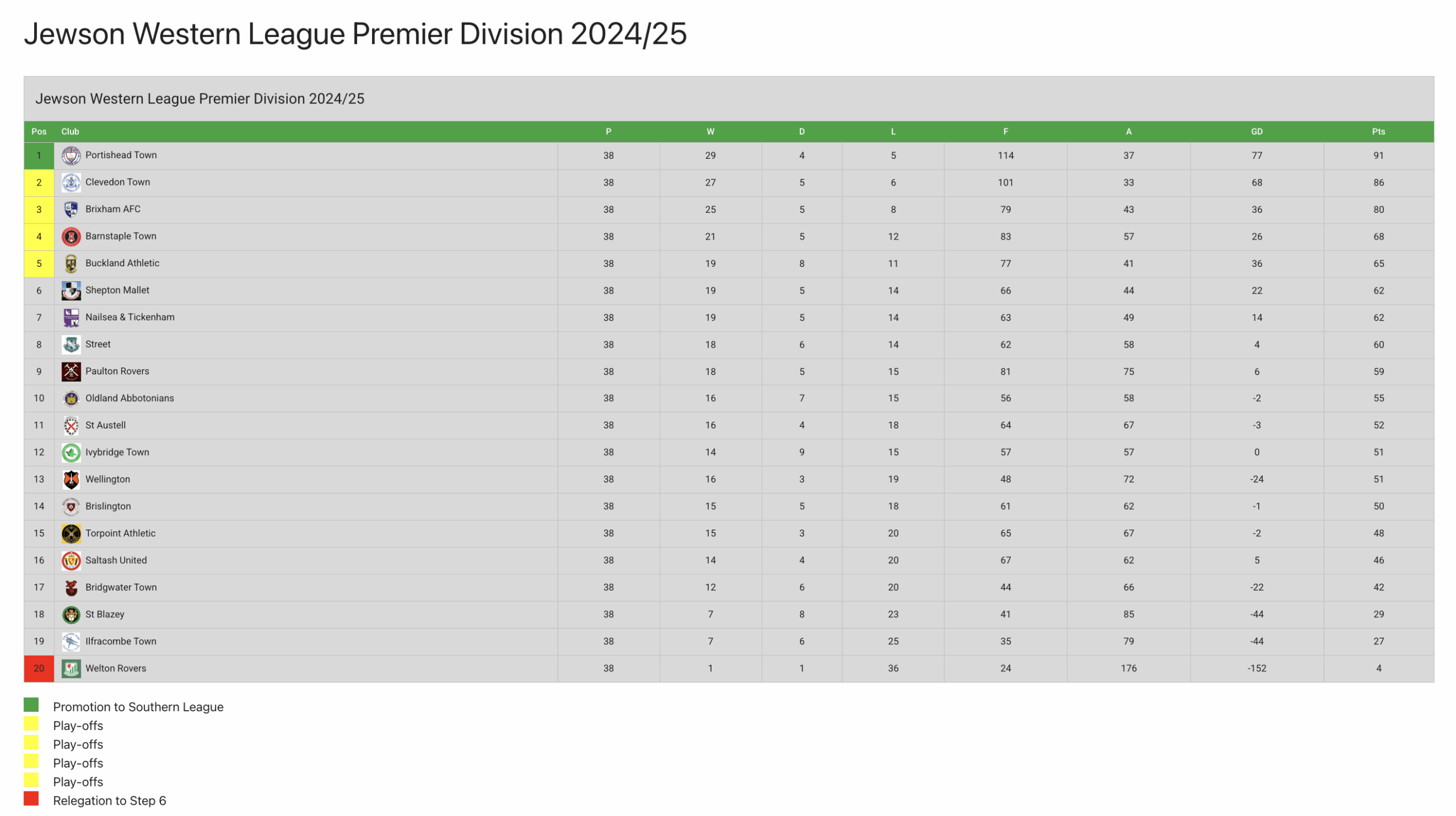 Honours: First Team – Play-off Winners Western League Premier Division, Runners-up Les Phillips Cup.